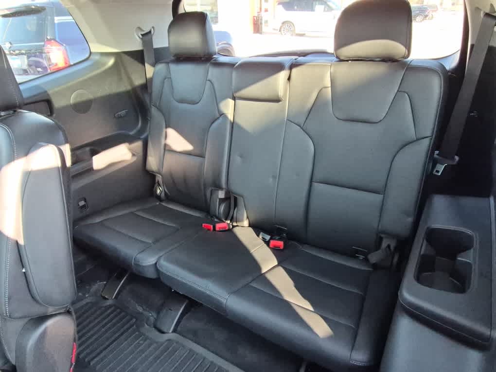 EPA 24 MPG Hwy/18 MPG City! Hertrich Certified Pre-Owned. Ebony Black exterior and Black interior. Heated Leather Seats, Third Row Seat, Navigation, Moonroof, CARPET FLOOR MATS, Aluminum Wheels, Captains Chairs, Panoramic Roof.